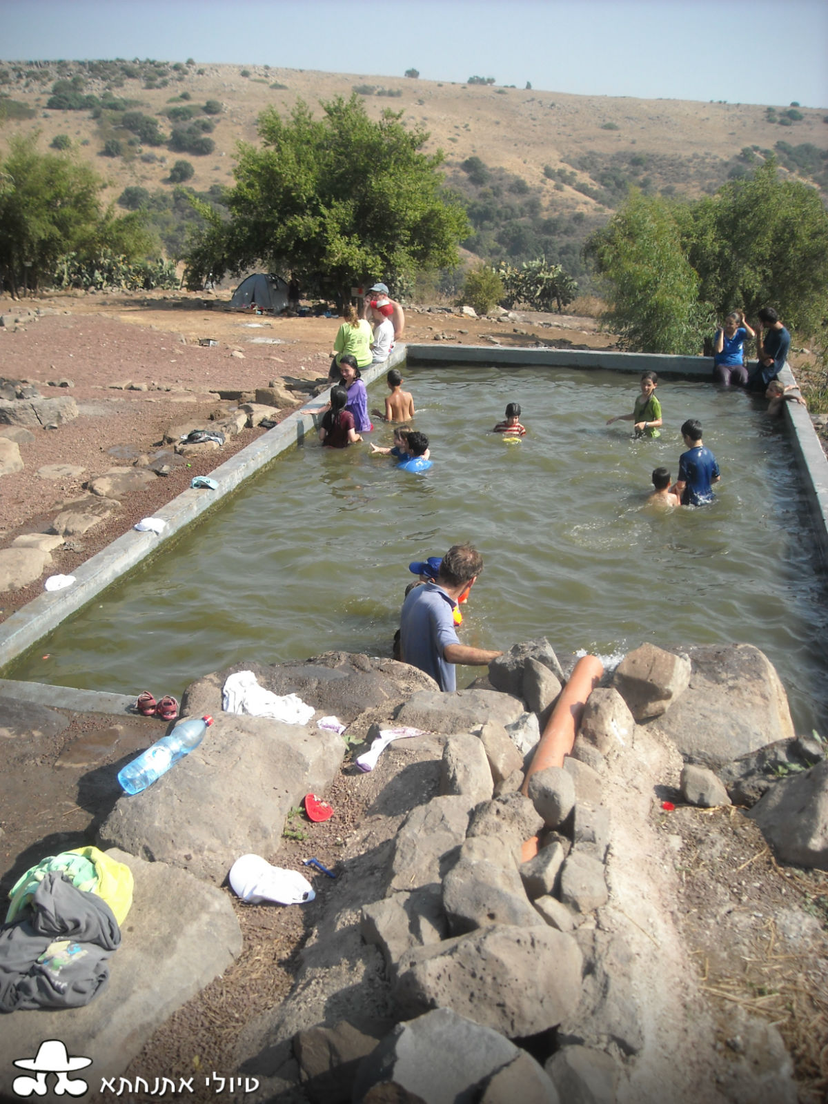 נתפסים לבריכה מלבנית הבנויה מבטון. עומק המים כמטר המים עצמם חשופים בשמש, אבל מאחר ואילו מים קרים, שצריך רגע להתרגל אליהם, נימרח היטב בקרם הגנה, נלבש חולצה ונהנה מהקרירות המתאימה לימים החמים של ארצינו.