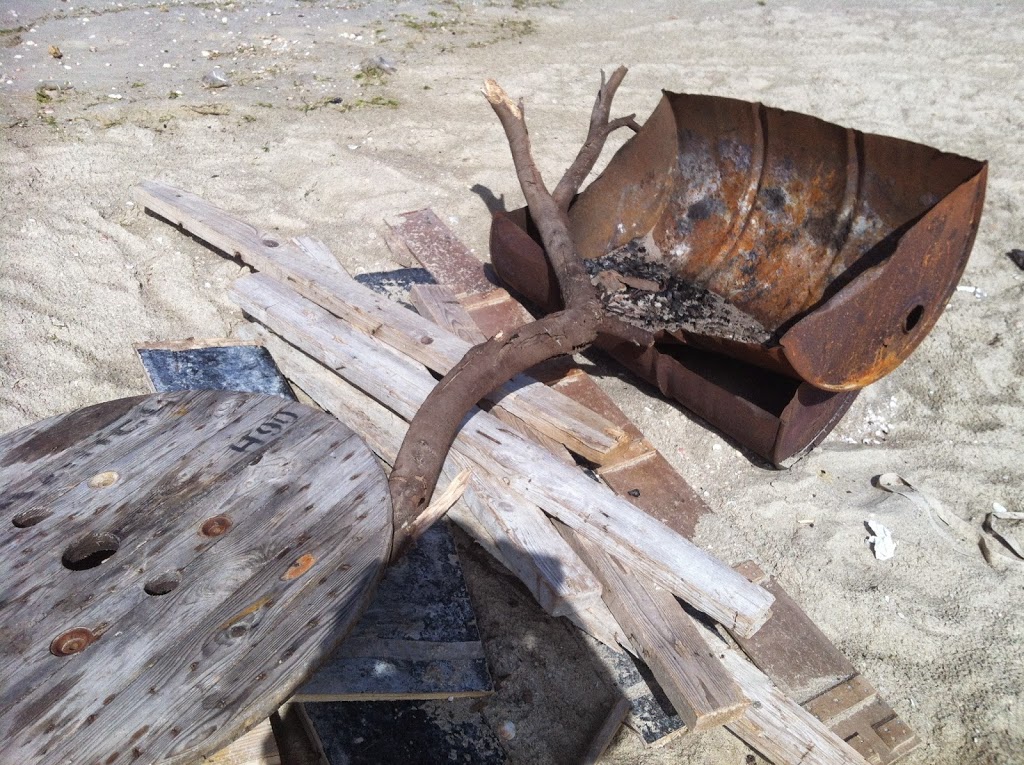 | חבית בה עושים את המדורה וכך שומרים על החוף נקי |